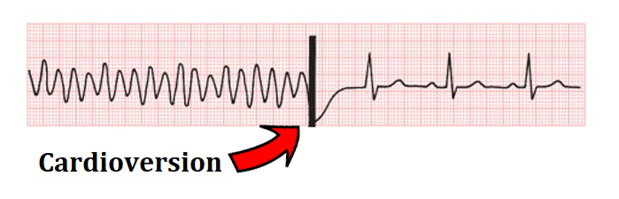 Following electrical discharge, hopefully the patient converts into a normal sinus rhythm. If they go back into a tachycardic rhythm >150bpm, then another cardioverison with more joules may be necessary.