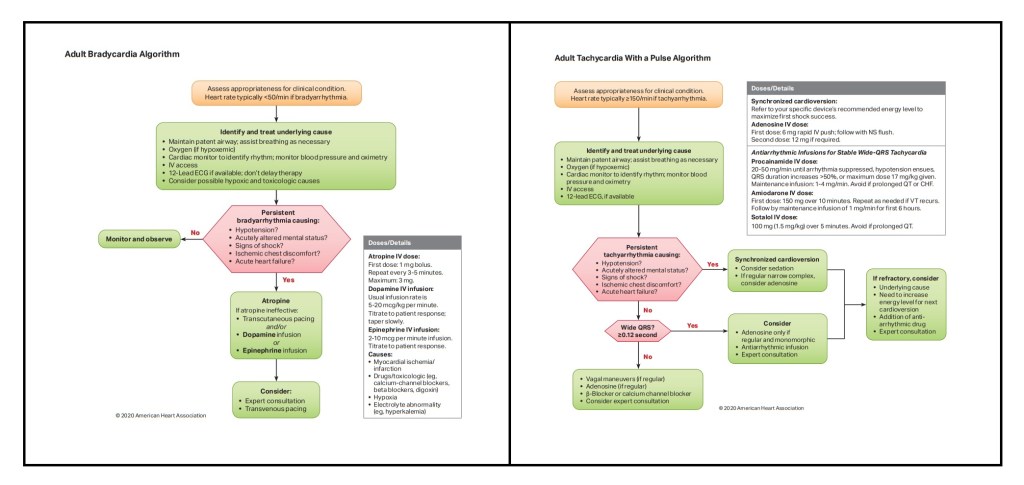 In today’s blog we will be continuing our review of the American Heart Association’s Advanced Cardiac Life Support (ACLS) Course. We will discussing the Bradycardia and Tachycardia Algorithms.